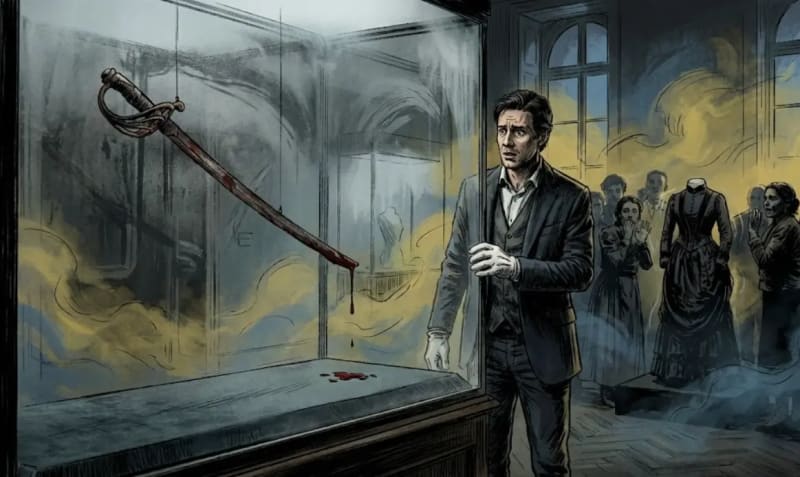 A small crowd had gathered around a glass display case in the center of the room. Inside rested a cavalry saber from 1863. Its steel was pitted, its leather grip rotted.
